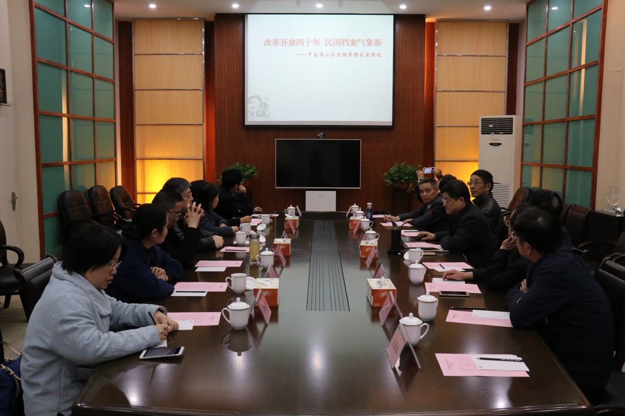 2018年11月30日,江苏省政协社科界委员一行来二史馆考察调研,在听取了马振犊馆长《改革开放四十年来二史馆发展情况》汇报后,实地调研了民国档案数字化工作场所,并现场观摩珍贵档案修复工作。