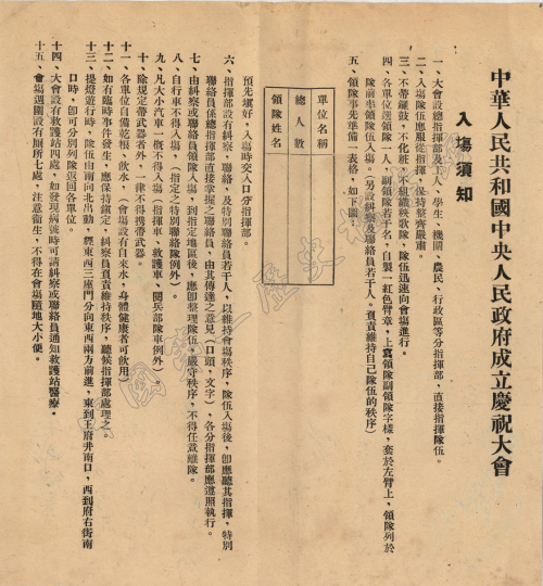 中华人民共和国中央人民政府成立庆祝大会入场须知