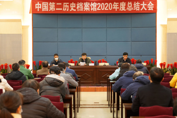 1月15日,中国第二历史档案馆召开2020年度总结大会。会议由副馆长曹必宏主持。馆长马振犊代表馆领导班子作年度工作述责报告,副馆长、机关党委书记戚如高宣读2020年度全馆优秀干部职工名单。本次会议严格落实中央办公厅疫情防控措施及属地有关防疫要求,严格控制参会人数与会议时长。