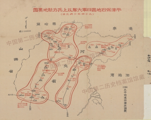 3.平、津、保、石地区日军大队以上兵力驻地要图(1945年10月3...