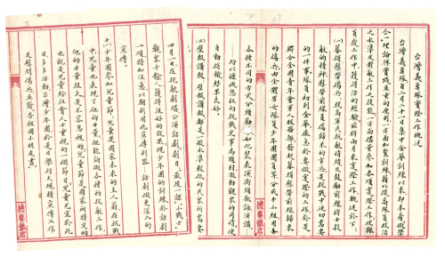 对敌工作的独特利器。台湾义勇队的对敌工作,主要是对敌政治工作,即派队员到各部队帮助翻译日军文件、审讯俘虏、收听日军广播获取情报、教士兵用日语喊话等等,同时也宣传台湾义勇队参加抗战的意义。因台湾义勇队队员长期生活在日本殖民统治之下,大多会说日语,这就为使用日语进行对敌宣传提供了便利。档案中记载: “本队队员多善操日语、韩语……曾与日、韩俘虏作亲切之谈话,结果甚为圆满。此后教育俘虏、感化俘虏的工作相信可能顺利进展。”义勇队队员还利用善说日语这一特点,潜入日占区收集情报,如打入日方军政机构及沦陷区的某些职业团体,或以金钱“贿赂”敌伪人员获取情报。