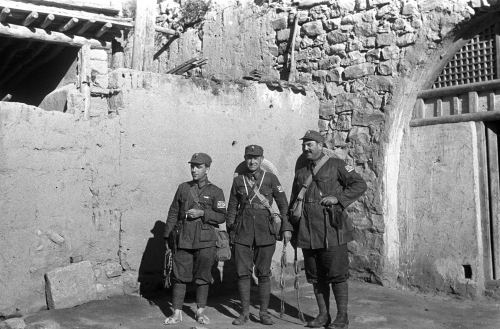 爱泼斯坦(左一)、武道(中)和福尔曼(右一)在晋绥边区。