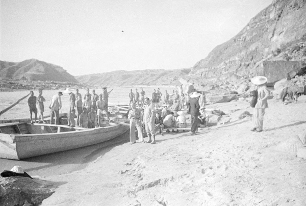 1944年5月31日,记者团一行准备乘船西渡黄河。